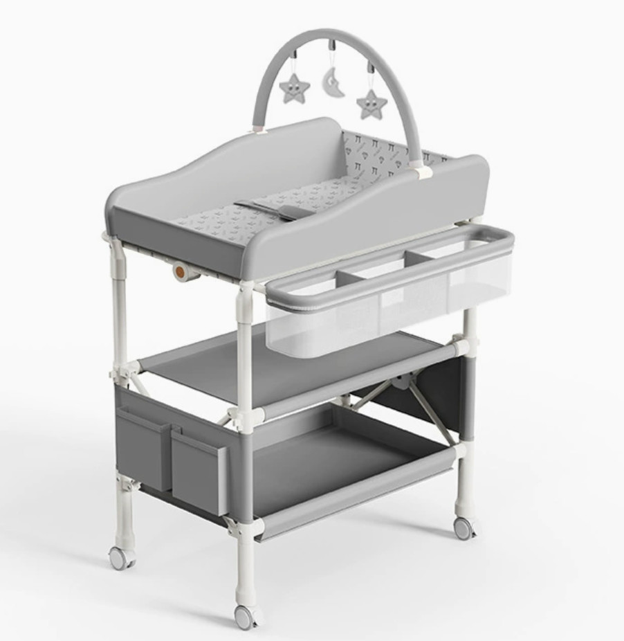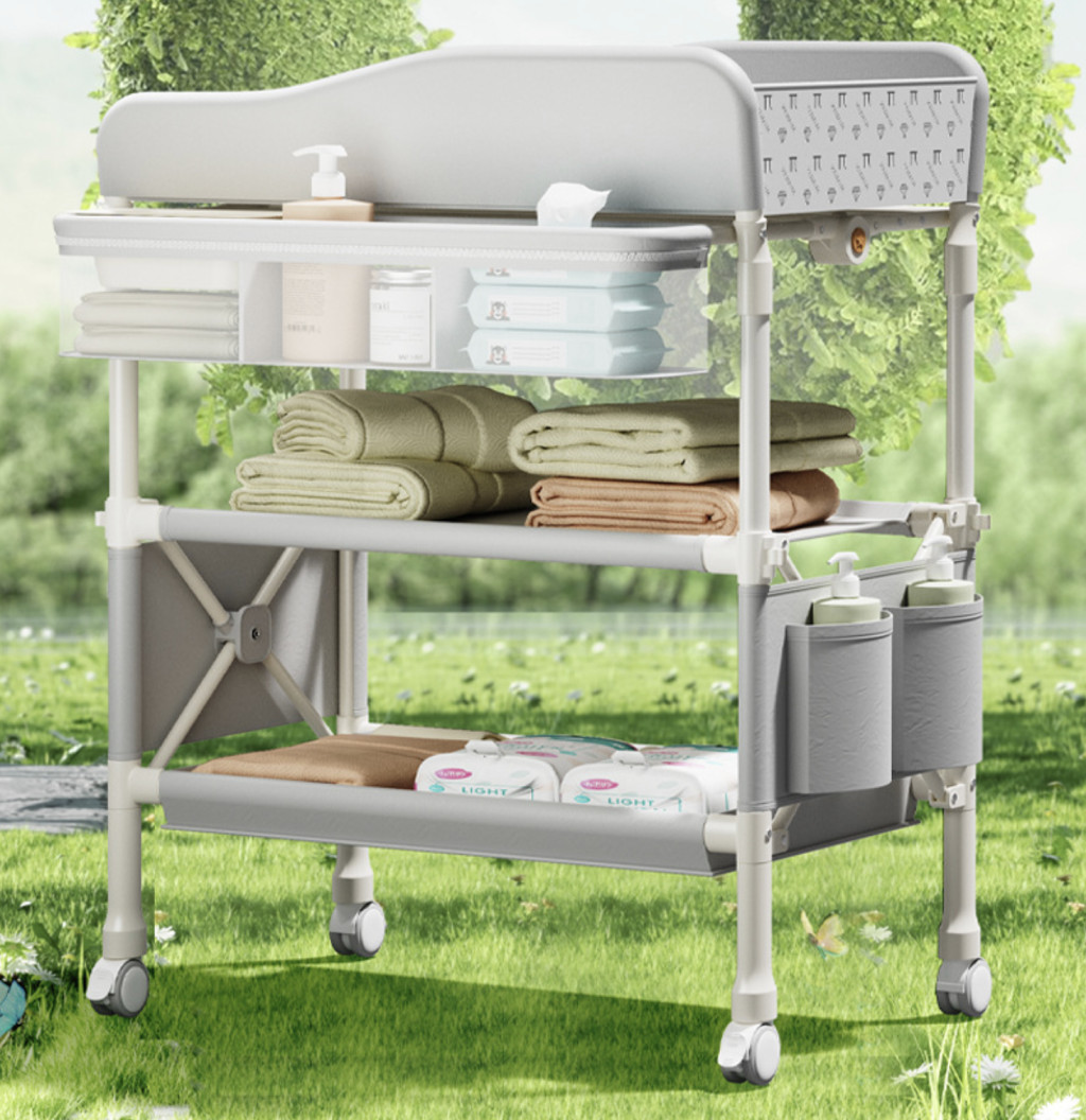 Fém Összecsukható Pelenkázó asztal szürke állítható magasságú és 360 fokos irány