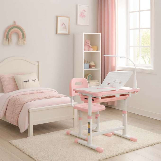 Egy multifunkcionális gyerekasztal mozgatható tetejű és kihúzható polccal elengedhetetlen kiegészítője a gyerekszobának. Ennek a modellnek az előnye az asztal és a szék állítható magassága , így könnyen a növekvő kisgyermekhez igazítható. Az olyan kiegészítők, mint az ergonomikus könyv- vagy füzettartó vagy a LED-es lámpa, barátságos tanulási helyet teremtenek az iskoláskor előtti gyermekek számára .