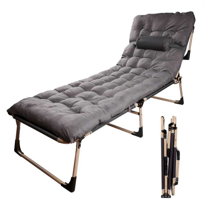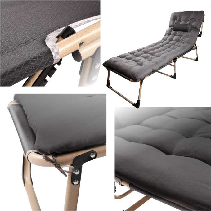 Egy párnás kempingágy tökéletes megoldás nem csak kempingezéshez! Kényelmes pihenőhelyet biztosít sátorban alváskor és otthon is, amikor a család vagy a barátok átjönnek éjszakára. A 4 fokozatú háttámla-állításnak köszönhetően tökéletes lesz kényelmes nyugágyként a kertben is. Az ágy összecsukható és könnyű , így könnyen magaddal viheted bárhová. A szetthez tartozó nagyméretű párnának köszönhetően a fekvés önmagában is élvezetes. Ezenkívül a fej alatti kis párna biztosítja, hogy könnyen megtaláld a kényelmes pozíciót éjszaka.