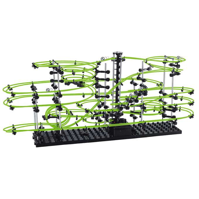 Az összeszerelés után készüljön fel többórás szórakozásra, miközben nézheti, ahogy a fémgolyók csúsznak és ütköznek a saját pályáján. A dugóhúzós lift segít felemelni a fémgolyókat az épület tetejére, és csak a képzeleteden múlik, hogy a golyók ezután merre mennek. Építs egy nagyszerű pályát, lődd ki a labdákat az építmény tetejére, és nézd meg őket, ahogy egyenként visszatérnek a lifthez, és bonyolult kanyarokon és hurkokon mennek keresztül az út során. Mutasd be látványosan a fizika alapvető törvényeit barátaidnak és családodnak.